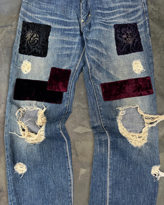 NUMBER (N)INE SSAW03 "TOUCH ME IM SICK" VELVET PATCH DENIM