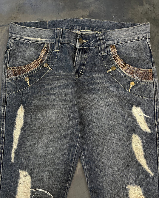 Sold outTORNADO MART SNAKESKIN FLARED DENIM