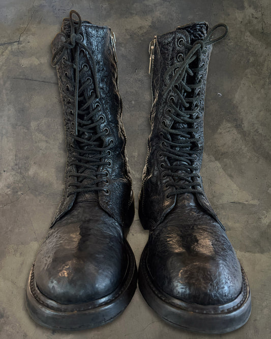 RICK OWENS AW2009 "CRUST" CRINKLED SHARK LEATHER COMBAT BOOTS