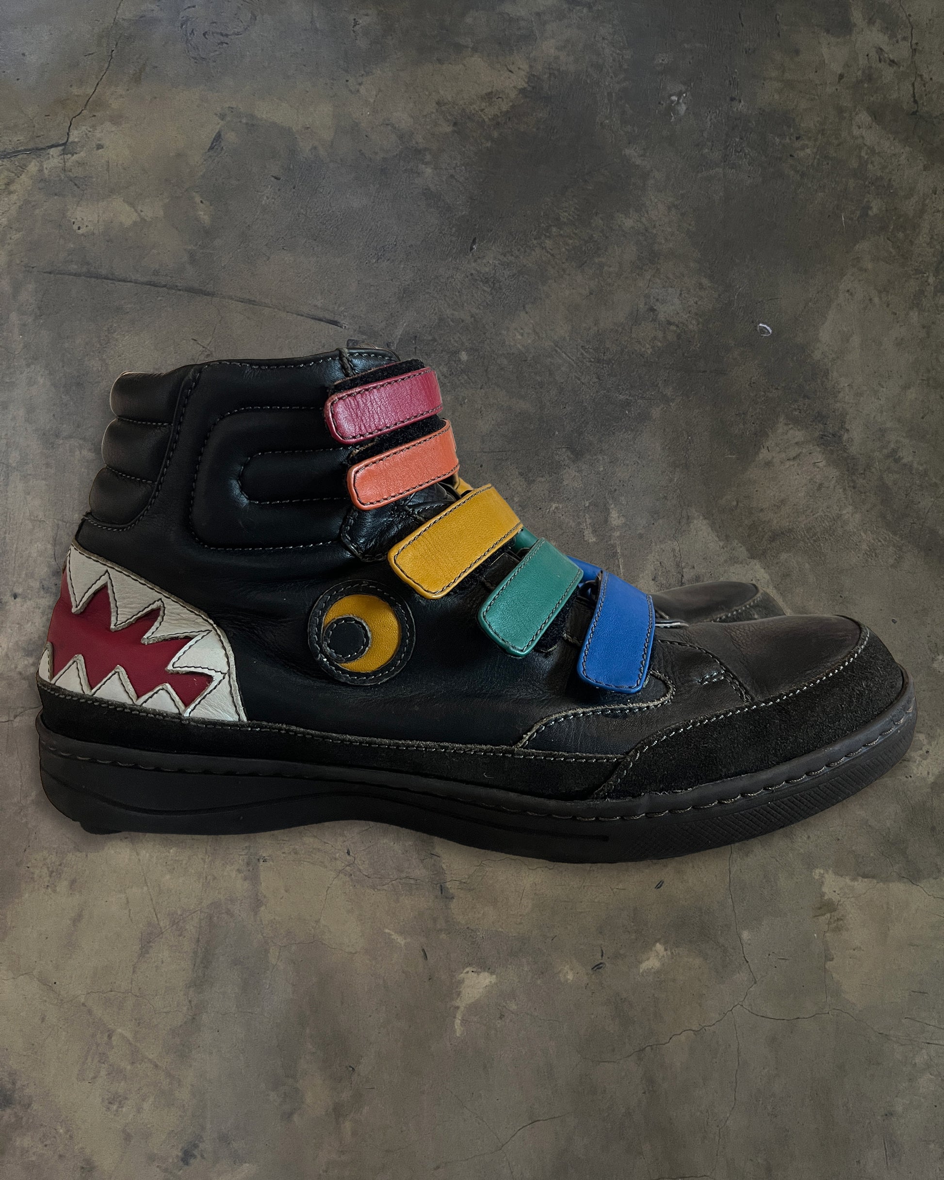 Crazy. High tops by Jean Charles de Castelbajac. Geeked shark design with mouth on the back. So fire.